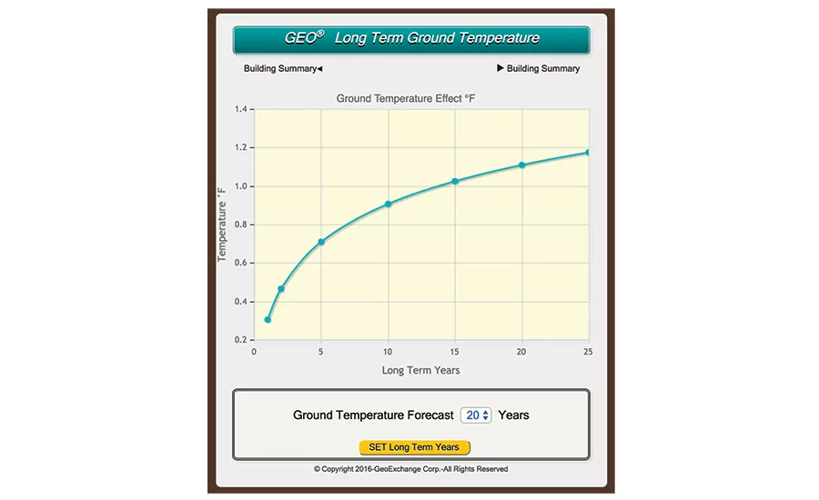 According to Dennis Koop, this payback is not obvious, and existing geothermal heat pump design methods don’t do the energy cost analysis and compare the ground loop installed cost in a way that allows designers to see that the excess design contingency is a waste of money. As mentioned earlier, the ASHRAE headquarters has geothermal systems installed with results from monitoring actual geothermal heat pump operations and ground loop temperatures. Using this real-world data, geohourly.com was able to simulate the ground loop length to within 2 percent of the actual installed length, and the operating cost to within 1 percent of actual energy cost.