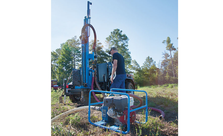 Mechanical drills, however, are not suited for every project. To drill deeper and power through hard rock, use a hydraulic drill. These machines achieve depths of 300 to 400 feet and are generally the go-to for crews consistently drilling deeper than 150 feet. To generate as much as 5,000 pounds of push-down force in rugged rock formations, look for a drill rig with an anchoring option and a bypass flow switch. With these added capabilities, crews can more efficiently reach clean water.