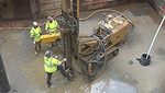 Lakeshore Engineering lowers a Beretta T46 drilling rig into the excavation using a crane as UMA’s team offers direction.