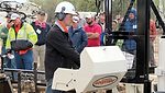 Geoprobe product development engineer Ryan Kejr introduces the new 3230DT combination rig at the company’s Salina, Kan., facility during a recent open house. The 3230DT is a mid-sized tracked rig that combines direct push with traditional auger and rotary capabilities. For more photos, visit www.thedriller.com/galleries.