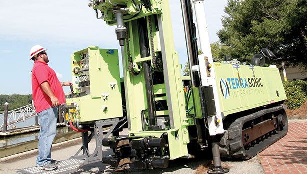 Steven Widincamp, chief of the U.S. Army Corps of Engineers Savannah District’s exploration unit, takes a turn with the district’s new TerraSonic drill rig. The rig — the first of its kind for USACE — will go to work in subsurface and geotechnical investigation projects.