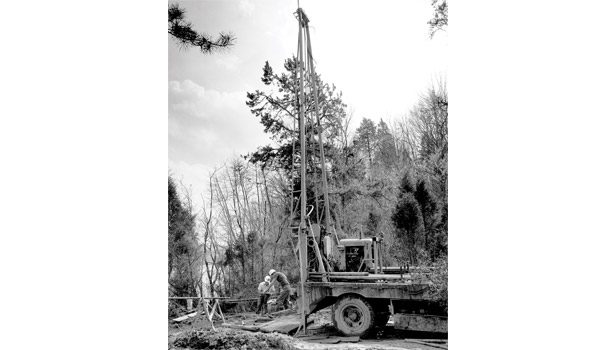 Drillers take rock core samples at the Clinch River Breeder Reactor Project site in Oak Ridge, Tenn. This photo, taken around 1974, shows early work on a project that was canceled by Congress in 1983.