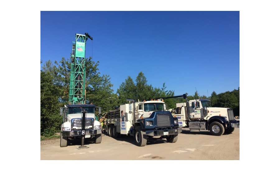 Capital Well Clean Water Center crews work on a residential job in Sunapee, N.H., where they decommissioned an existing 600-foot water well, then installed a new well in addition to five 500-foot bores for geothermal loops.