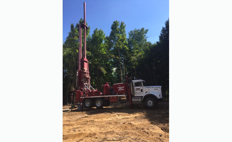 Canadian Well Drilling, owned by Jamie Archer and Pete Fleming, with its Foremost DR 24 drill rig. Driller Bailey Holmes drills a water well in Midhurst, Ontario, Canada.
