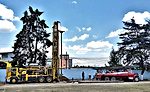 A Soilmec SM-14.3, commissioned by American Equipment & Fabricating Corp., is ready for jet grouting work on a barge in Boston.